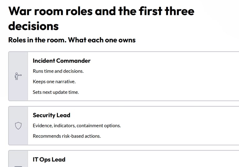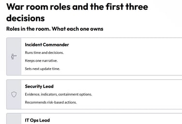 Most incidents become expensive when the organization loses time. Not because people are lazy. Because decision rights are unclear and messaging becomes inconsistent.
