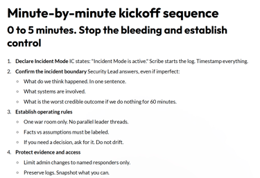 Turn “incident response” into first-move execution.
