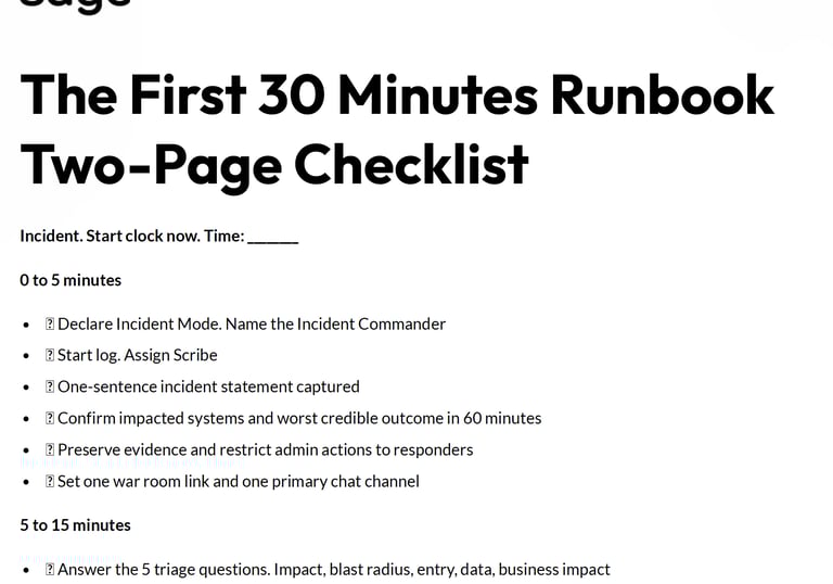 No. It is not a forensic guide. It does not replace your IT runbooks. It is the executive layer that drives speed, alignment, and comms discipline.